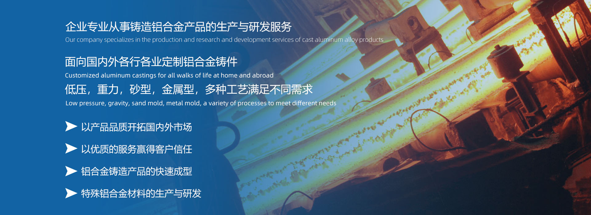 The company is committed to introducing advanced aluminum alloy new materials and casting technology concepts and standards, focusing on aluminum alloy casting product development, production and service, closely around technological innovation, to provide customers with satisfactory technical services and high-quality and reliable products. Adhere to aluminum alloy casting production and service as the main body, establish, implement and continuously improve the quality management system, in order to enhance customer satisfaction unremitting efforts. Products are widely used in UHV electrical components, medical devices, pharmaceutical packaging machinery, auto parts, air compressor components, high-speed machine tools, energy equipment and military components and other fields.